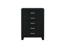 The Reid Chest from the Reid Bedroom Collection is a chic storage piece with a sleek black wood finish and glamorous hardware. This chest offers ample storage space while enhancing the modern aesthetic of your bedroom.