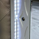 The glamor is in the details of this bedroom set from the Manar Collection. The headboard is upholstered in a faux leatherette, button-tufted with crystal-acrylic buttons, and embedded with a LED light, creating a sparkling aesthetic. The matching pieces feature a decorative, circular pattern, only adding to opulence of the design. Your bedroom will be a place to pamper yourself with this set.