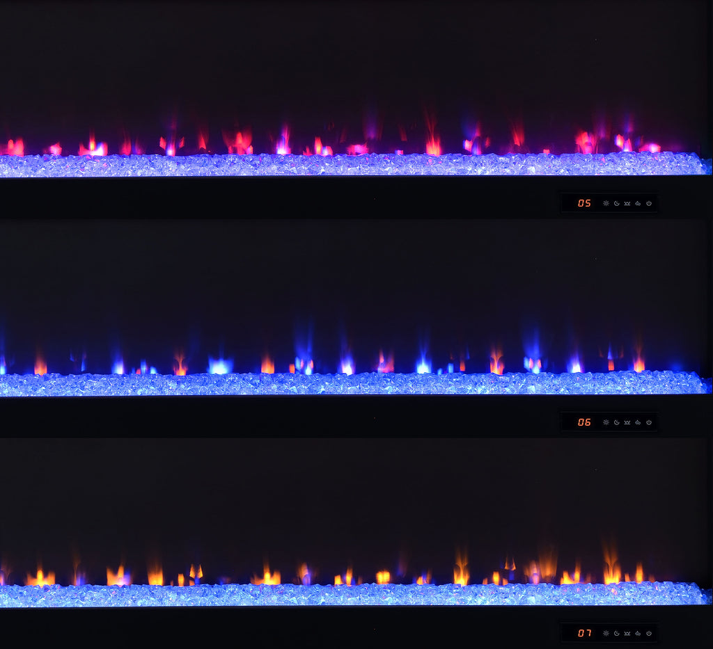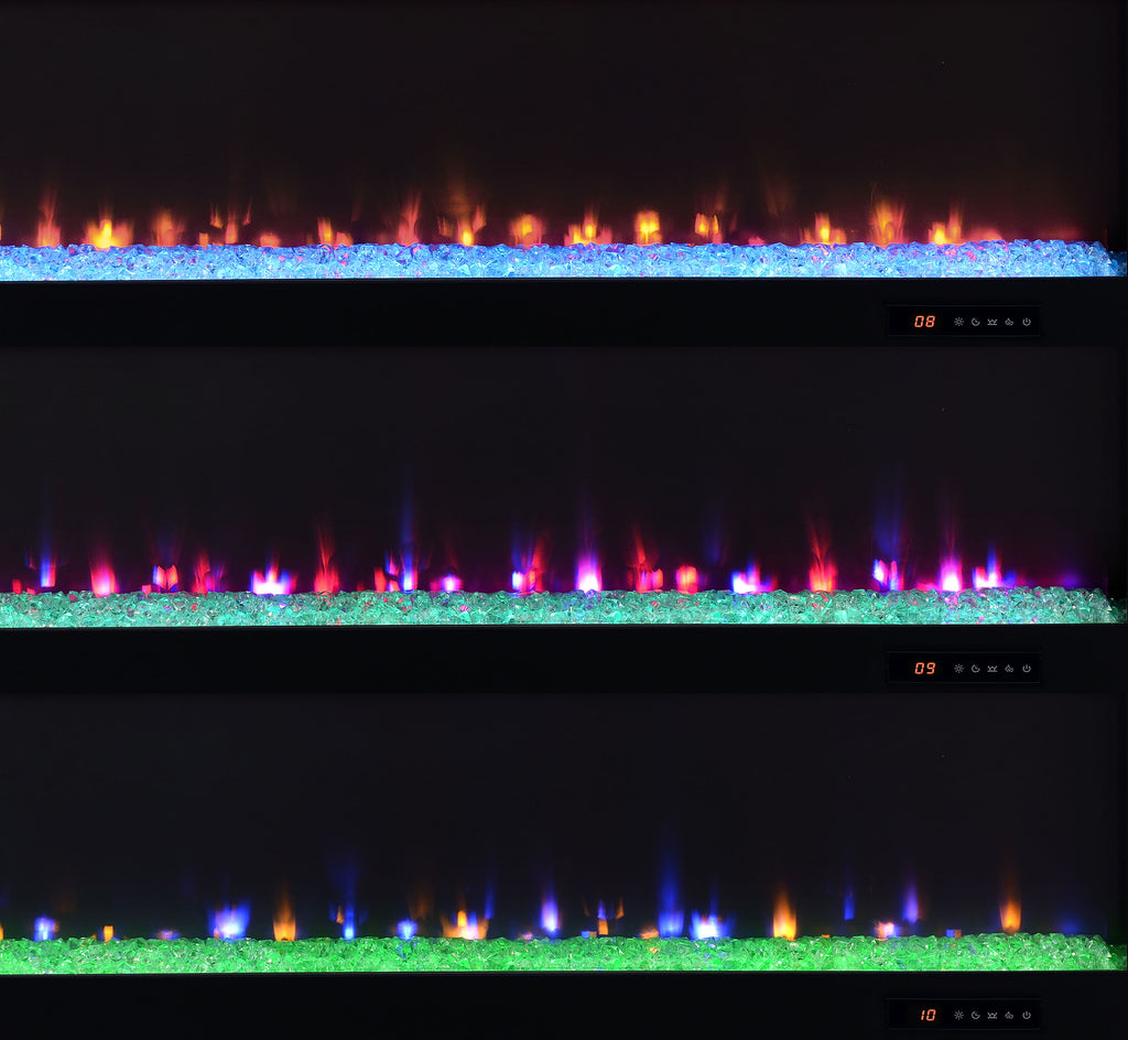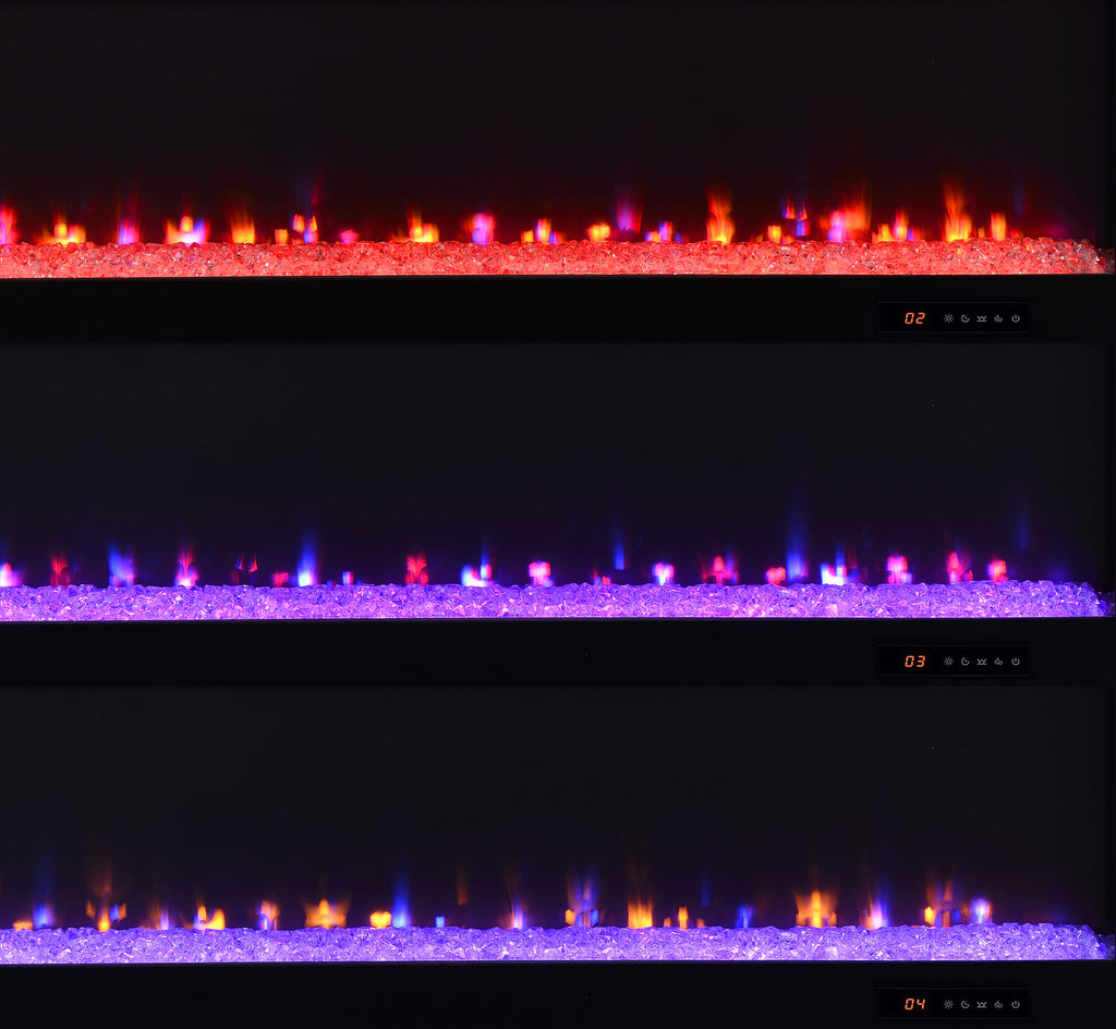This sleek fireplace media console brings warmth and streamlined storage to contemporary living spaces. A wide electric firebox glows over crushed acrylic crystals, offering fifteen customizable flame colors operated by a wireless remote. Open side compartments with adjustable shelves store devices or décor, while rear cable management cutouts keep wires out of sight. Finished in classic black and crafted from engineered wood with a laminate veneer, it serves as a refined TV stand or entertainment center. Please note that this console does not include a heat function. Key Features: • TV stand fireplace console with flame visualizer and crushed acrylic crystals for visual warmth • Black finish highlights clean lines and adds bold, modern character to any space • Two open side compartments with adjustable shelves offer flexible display or storage • Fifteen flame colors with wireless remote control for lighting customization • Crafted from engineered wood and durable, scratch-resistant laminate veneer • Accommodates TVs up to eighty-five inches with rear cutouts for cable management