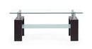 This table is complete with clear top glass and frosted bottom glass and dark walnut legs to finish the look.