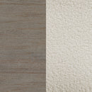 Trestle inspired style brings charming character to a five-piece modern farmhouse dining room set. It focuses on a rectangular dining table, complete with four side chairs that create a cohesive look with a casual coastal grey finish. Cream upholstery adds a fresh, bright touch, perfect for an inviting kitchen or dining room. Chairs feature modified ladder backs, offering artisan appeal, while the decorative table base instills the perfect touch of dimensionality. Foam padding adds comfort to seats, perfect for family and friends to enjoy a meal and conversation.