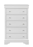 Your sleeping space should dazzle with the Pompei Chest by Global Furniture. Featuring spacious drawers, crystal inspired hardware, and textured detail. This chest is sure to provide an unexpected luxe look and feel in your bedroom.