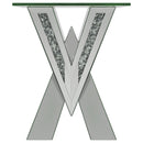This mirrored coffee table set brings modern luxury to any living space. Featuring a coffee table and matching end table, both pieces boast bold V-shaped bases adorned with mirrored panels and glittering crystal accents. The coffee table’s rectangular glass top and the end table’s square top provide sleek, beveled tempered glass surfaces for added elegance. A perfect combination of glamour and functionality for contemporary interiors.