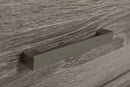 Augment your styling and approachable bedside with a transitional two-drawer nightstand. Delivering a touch of farmhouse charm and casual ambiance, it provides plenty of storage at your bedside. Its wide top is ideal for a reading light or a vase, offering a perfect space for personal touches. A brown oak wood grain finish graces laminate surfaces that are specifically engineered to resist scratches and dents. Bar handles decorate drawer fronts while mitered trim and tapered block legs add the perfect touch of precision and dimensionality.